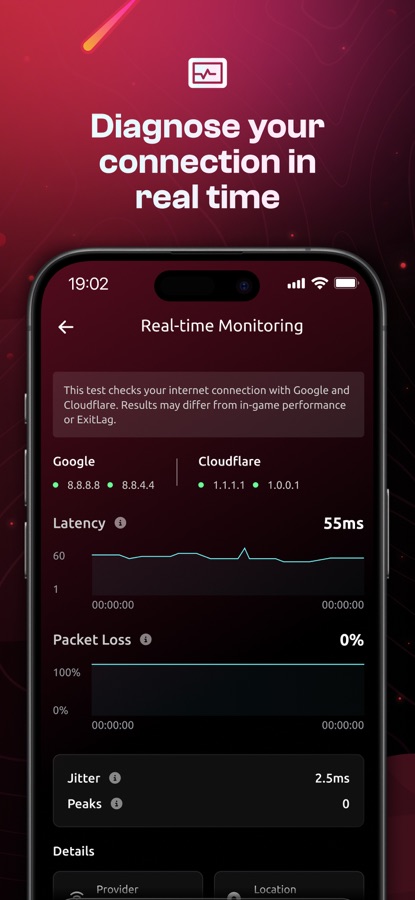 Real-Time Monitoring: Track your connection latency live and access comprehensive reports.