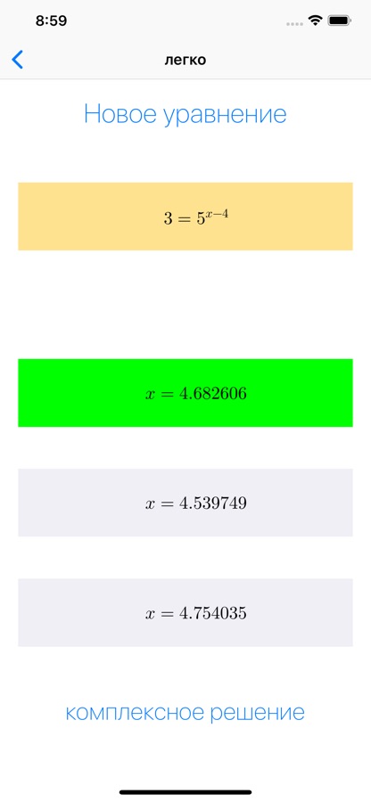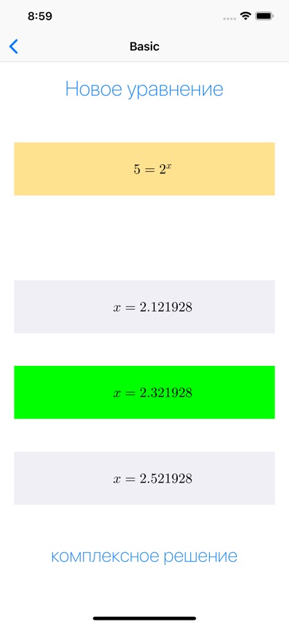 App предлагает экспоненциальные уравнения, которые постоянно меняется и
