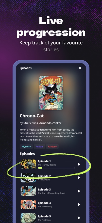 Parent Feedback: “The vertical, panel-by-panel scrolling is brilliant. It’s lovely to be able to give him the iPad and watch him confidently re-read his favourite stories on his own… he loved the daily push notification that he would then look forward to at his bedtime reading.”
