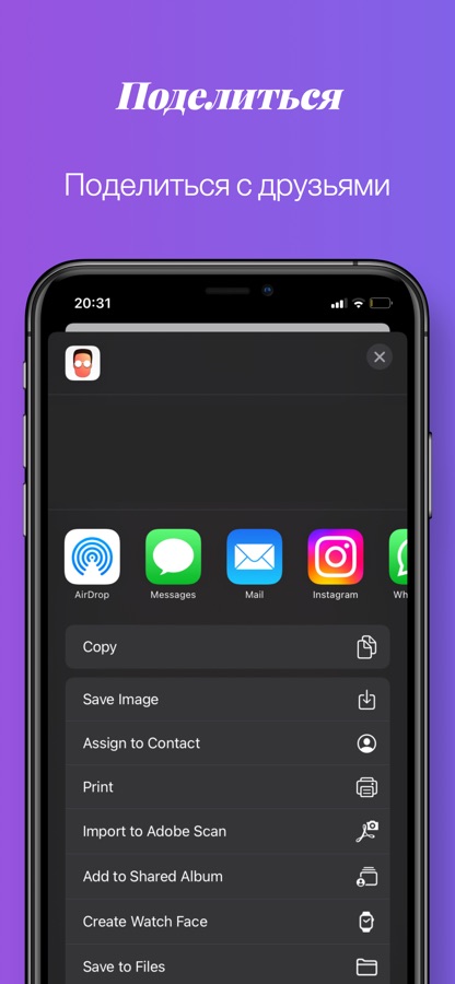 -Поделитесь с друзьями в iMessage, Instagram, TikTok, AirDrop, электронной почте, WhatsApp, Skype, Viber, Facebook, Telegram, Notes, Drive, Zoom, Teams, Outlook