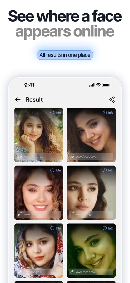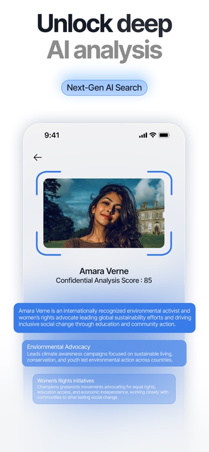 Face Search AI is a powerful deep search and facial recognition app designed to help you explore the internet through photos. Using advanced AI technology, this face find and reverse image search tool scans the web to discover where a photo may appear online. Simply upload a clear image in popular formats such as JPEG, JPG, or PNG, and let Face Search AI perform an intelligent image search across websites to uncover visually similar results. Whether you are trying to find info about someone, reconnect with old contacts, verify identities, or conduct a people search, our AI powered engine works as your digital investigation assistant.