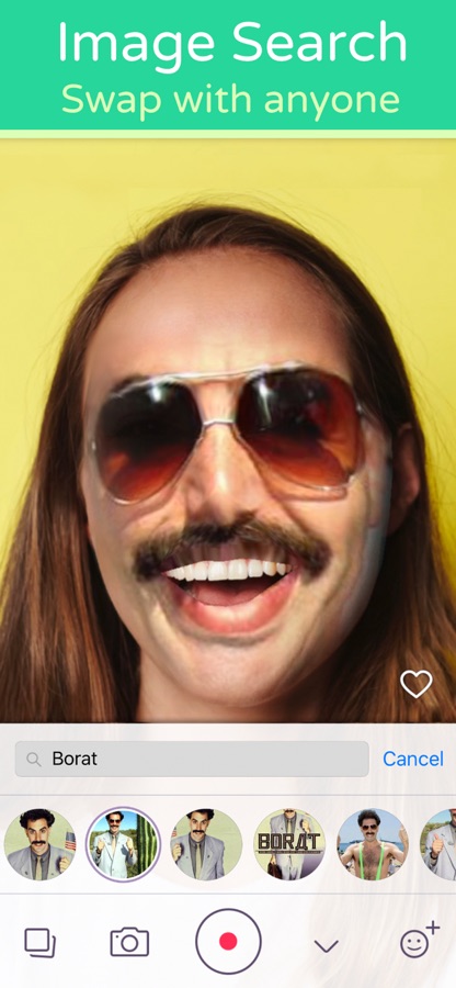 Лицо Обмен Живая позволяет переключаться лица с другом или фото в режиме реального времени. Запись видео или фотографии себя свапирования лица со знаменитостью, друга или любого веселья изображения из Интернета или телефона. В отличие от других приложений, которые могут использовать только статические фотографии, это приложение переходит лица живут прямо с видео-канал вашей камеры.