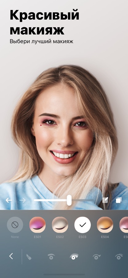 Примени подобранный стиль или создай свой собственный. Facey предлагает пользователям богатую коллекцию косметики для селфи-макияжа: тональные крема, румяна, тени для бровей, тушь, подводки для глаз, тени для век, помады и многое другое!
