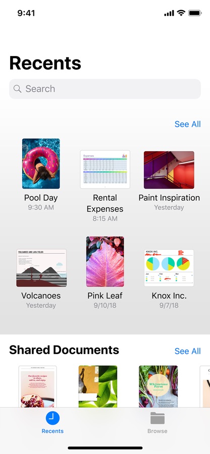 Используйте программу «Файлы», чтобы получать доступ к своим файлам и управлять ими вне зависимости от того, где они находятся — на устройстве или в облаке. В режиме «Недавние» в виде четких миниатюр показаны файлы и программы, с которыми Вы работали в последнее время. А в режиме «Обзор» удобно переходить к папкам, добавлять к файлам теги, перемещать файлы из одной папки в другую и искать информацию. Кроме того, используя программу «Файлы», легко получать доступ к iCloud Drive и другим сторонним облачным службам, таким как Dropbox, Box и OneDrive.