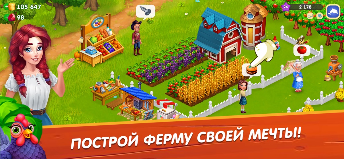 Ваши добрые соседи помогут вам освоиться и построить замечательную ферму! Общайтесь с друзьями в Соседствах, станьте лучшими фермерами! Исследуйте шахту, получайте ценные ресурсы, добивайтесь максимального прогресса! Выполняйте интересные заказы, расширяйте свои владения! Принимайте участие в Регате и других регулярных событиях, чтобы насладиться приятной семейной атмосферой на вашей ферме!