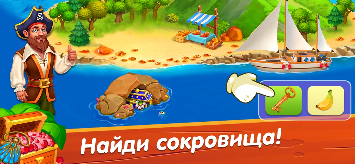 Вас ждут незабываемые поездки на острова! Воспользуйтесь замечательной яхтой, чтобы поплыть к островам и получать драгоценные ресурсы! Расширяйтесь, находите фантастические сокровища! Интересные и увлекательные миссии сделают расширение вашей фермы быстрым и веселым!