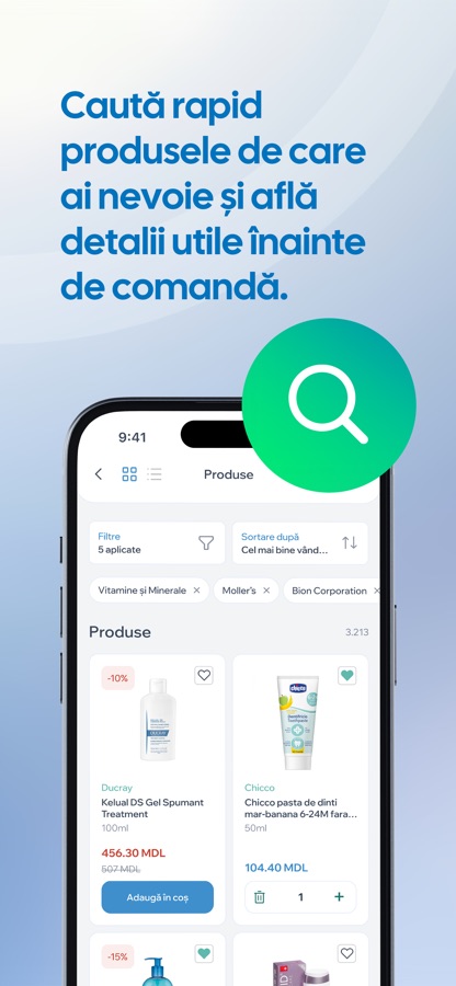 Приложение Farmacia Familiei предлагает быстрый и удобный способ заботиться о своих близких. Оно разработано для более эффективного использования по сравнению с веб-версией и предоставляет полный доступ к каталогу товаров, быстрым онлайн-заказам, персонализированным предложениям и цифровой карте лояльности — всё в одном месте.