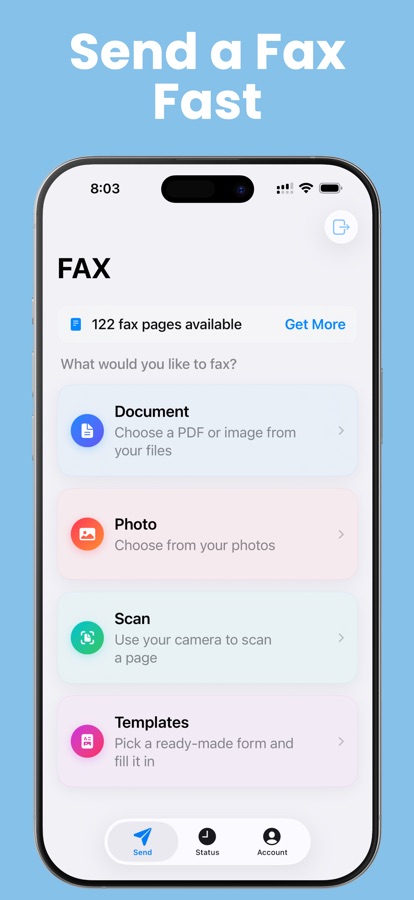 Additionally, the app includes a scanning functionality, making it easy to scan documents and send them as a fax.