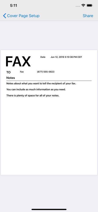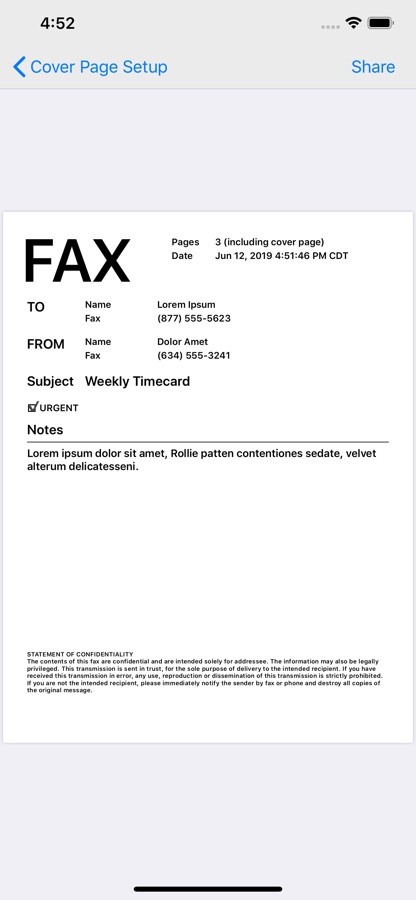 Choose which fields you what to show on your fax cover sheet. Fax pages can include a note section for your typed in message to your recipient.