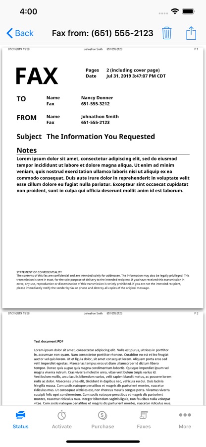 Faxes are provided in PDF format so you transfer them to a wide variety of applications.