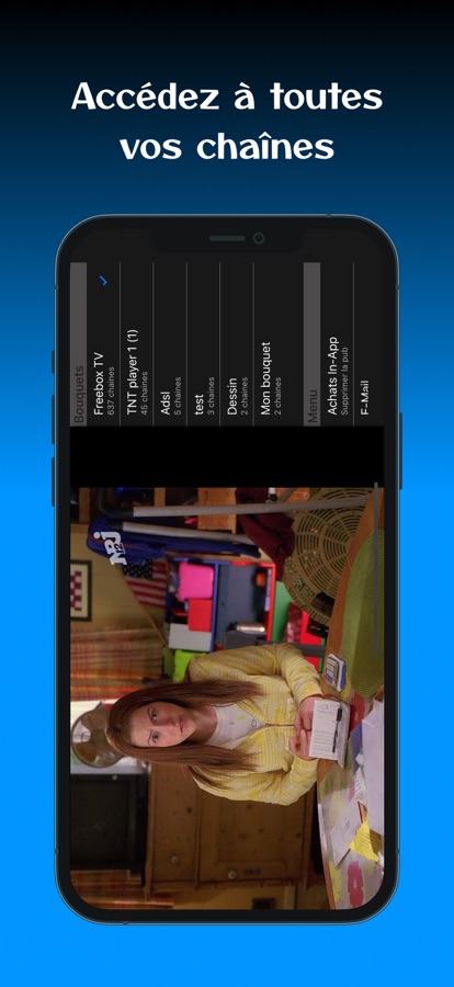 En plus de lire les chaines TV, cette application permet de choisir le bouquet puis de filtrer la liste suivant le type de flux (TNT, ADSL, HD…).
