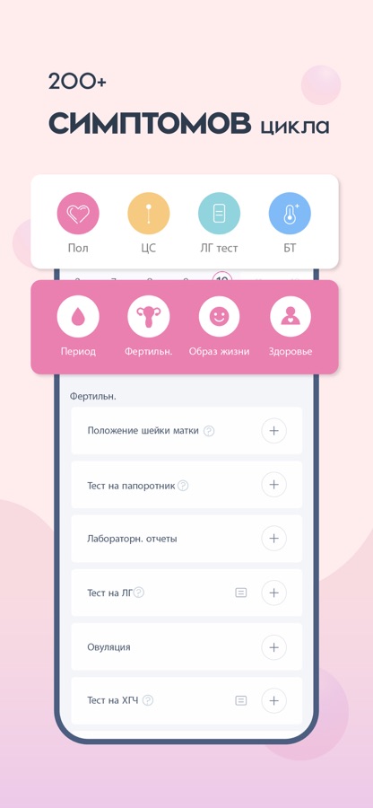 — Внесите данные о более 200 симптомах: от фертильности до образа жизни и здоровья. Профессиональный трекер женского здоровья.