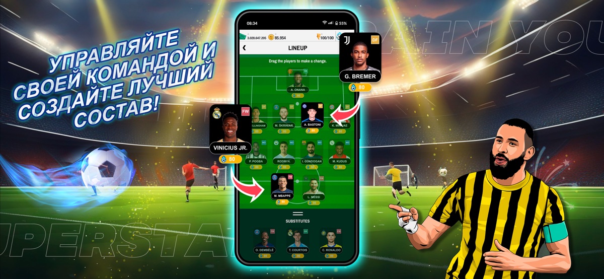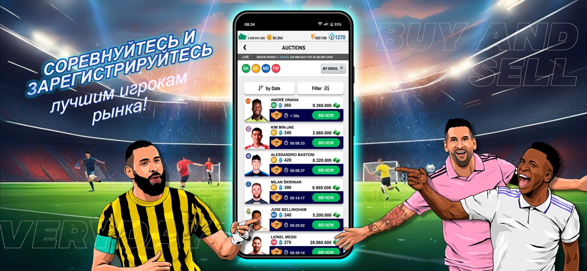 Чтобы играть в эту мобильную игру по управлению футболом, нужно принять «Политику конфиденциальности» и «Юридическое уведомление», которые можно найти по ссылке под описанием. Фэнтези-менеджер Футбол 2025 доступна для скачивания БЕСПЛАТНО и включает в себя необязательные покупки внутри игры. Если ты хочешь отключить покупки в приложении, пожалуйста, отключи их в настройках твоего телефона или планшета.
