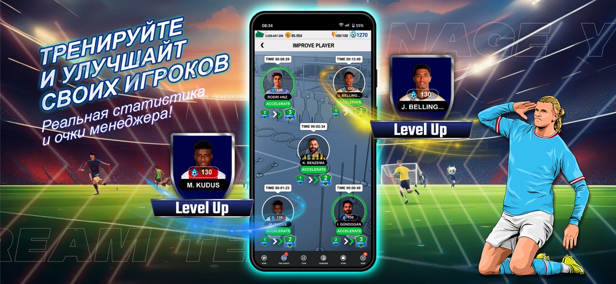 — Реальные игроки и команды: Управляй реальными игроками и соревнуйся с культовыми футбольными клубами.