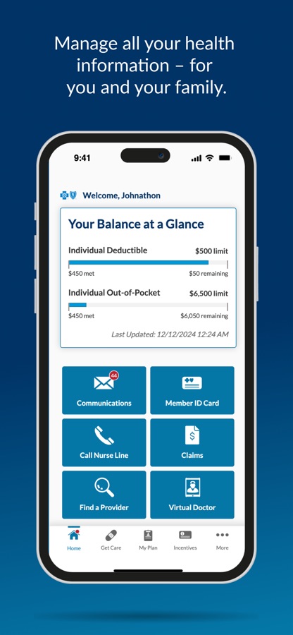 • You can find providers and urgent care centers without logging in. However, you’ll need your MyBlue username and password to access benefit information.