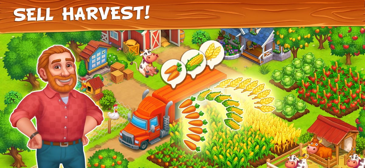 Расслабься и построй уютную ферму. Сажай урожай, ухаживай за животными и наслаждайся спокойной жизнью деревни даже офлайн.