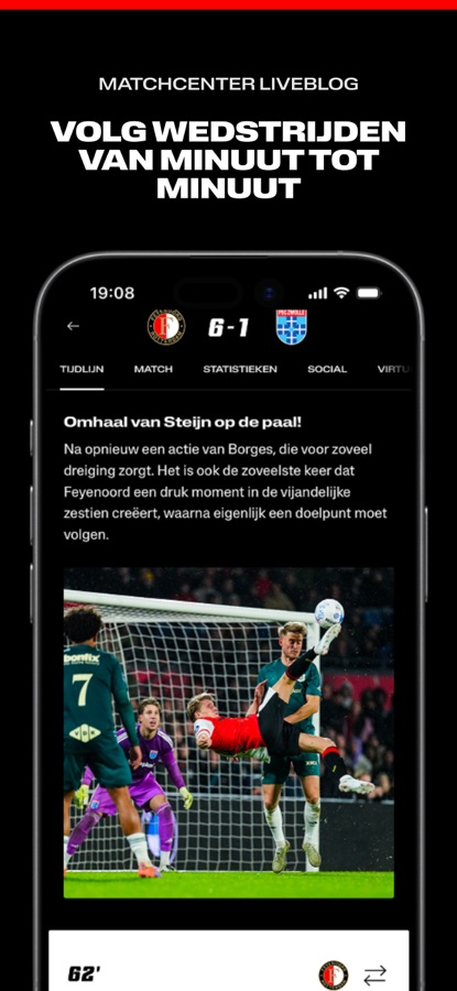 Tijdens wedstrijddagen is de Feyenoord App dé plek om de wedstrijd van Feyenoord 1 te volgen.