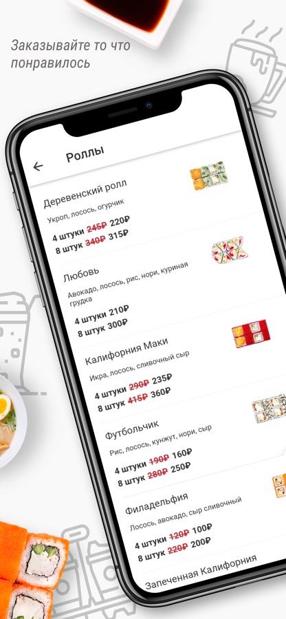 Приложение для заказа еды. Зарегистрируйтесь в личном кабинете, получайте баллы за заказы, узнавайте о новых акциях и скидках из пуш-уведомлений!