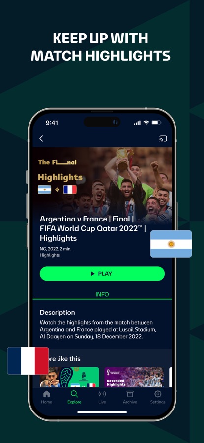 Download the FIFA+ app today and stream live football, match highlights, documentaries and FIFA World Cup™ content — All in one place. Experience the world’s game, your way.