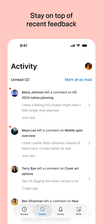 Collaborate on the go. View, share, and mirror designs with just a few taps. With Figma’s official mobile app, you can: