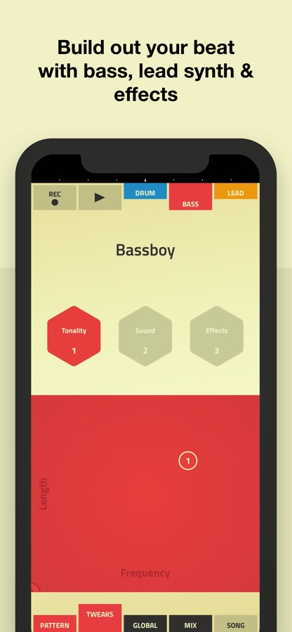 • Create complete songs with drums, bass and lead melodies.