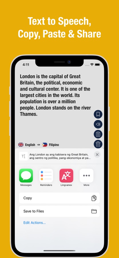 It is a translation tool that helps you break down language barriers. Excellent app for all who makes the first steps in learning Filipino. Intuitive interface, easy navigation, quick result. Begin conversations confidently!
