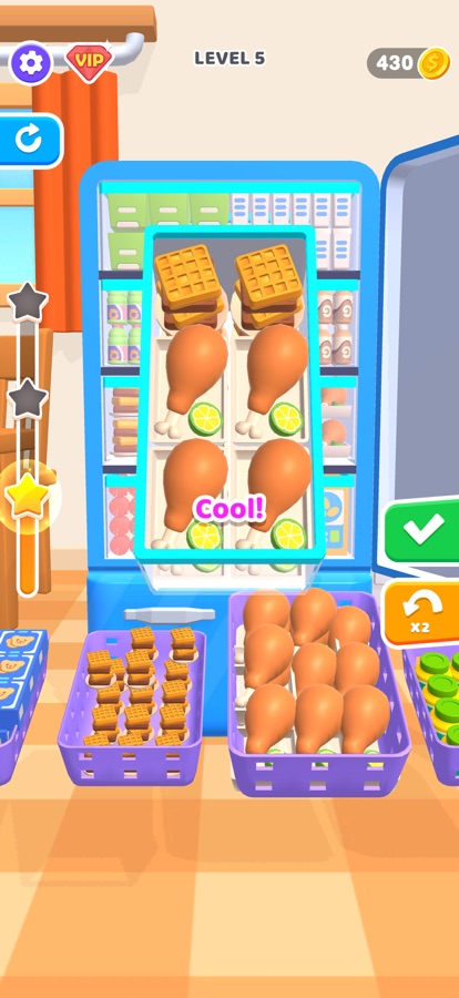 Удовлетворите чувство пополнения, смоделируйте реальную жизнь — Смоделируйте сцену классификации предметов в жизни, положите разные предметы на полку в холодильник и наслаждайтесь счастьем наполнения холодильника.