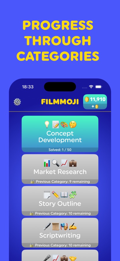 • Level Up: Progress through exciting categories like Story Outline, Scriptwriting, and even Budgeting as you rise to the top of Hollywood!
