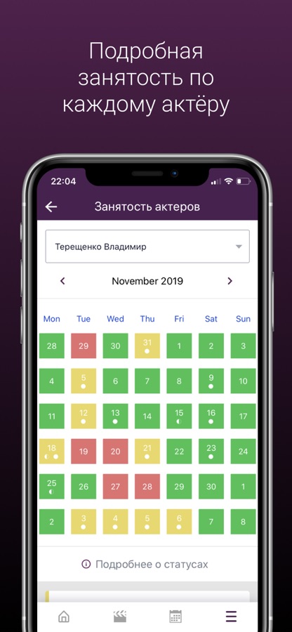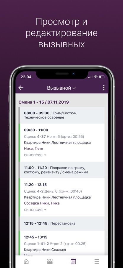 — просмотр и редактирование актерской занятости