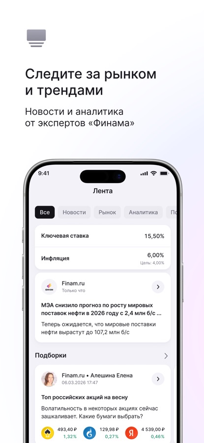 С Finam.ru вы всегда в курсе актуальных и персонализированных трендов рынка, которые подстраиваются под ваши предпочтения. Finam.ru публикует новости в режиме реального времени используя ленты ведущих мировых и российских агентств, предоставляя вам 3 000 новостей и комментариев каждый час. Умная лента предлагает материалы, что может быть интересно, адаптированных к вашим интересам, что делает его вашим ключевым ресурсом для получения объективной и актуальной информации о финансовой отрасли.