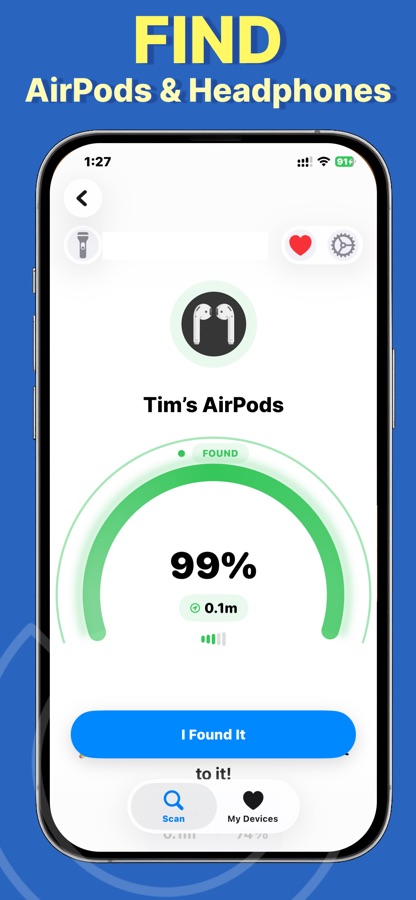 Lost AirPods? Need to find AirPod or AirPods, headphones, speakers, or a fitness band? Use the live proximity meter to recover what’s nearby.