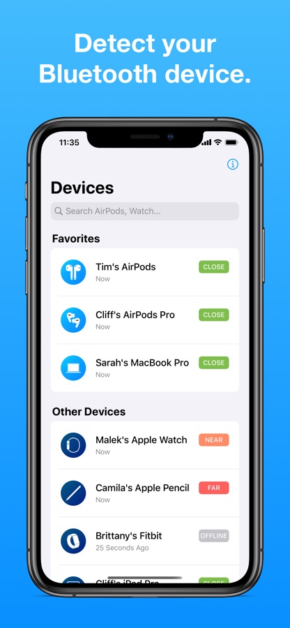 Find My Bluetooth Device shows you how close you are to the AirPods (and other Bluetooth devices) and can lead you to their location. It will detect your earbuds if their Bluetooth signal is on and you are less than 330 feet away (100 meters).