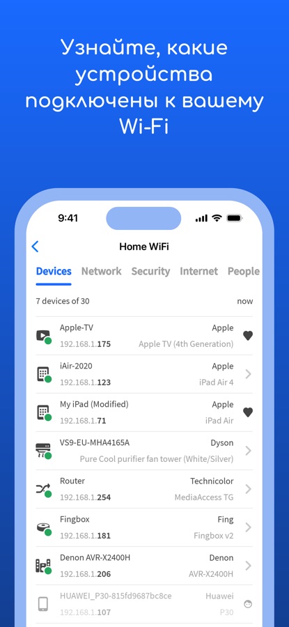 Fing — это сетевой сканер № 1: он обнаруживает все устройства, подключенные к вашему WiFi, и идентифицирует их, благодаря нашей запатентованной технологии, используемой также производителями маршрутизаторов и антивирусными компаниями во всем мире.