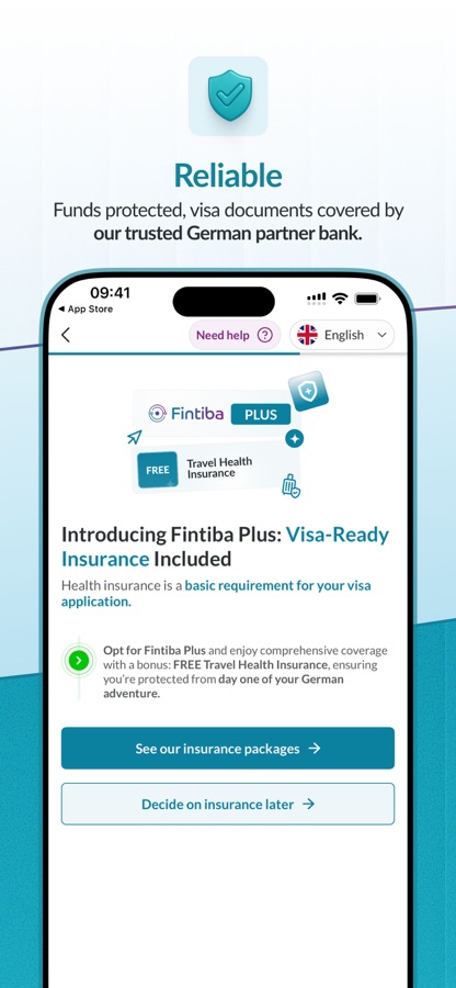 ACCELERATE YOUR VISA APPLICATION — Fintiba Plus includes everything you need for your visa and a seamless start in Germany. Preparing your visa application has never been easier. Get your blocked account together with the required health insurance within one solution. Covering everything from your visa appointment until the enrolment at your university. Everything fully digital and app-based.