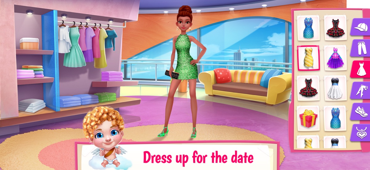 Любовь витает в воздухе! Вооружитесь луком, стрелами, парой крыльев и отправляйтесь создавать историю любви. Покажите своим клиентам, что вы настоящий профессионал в романтических делах, который им просто необходим. С некоторыми из них… как бы это сказать… довольно трудно работать. Но вам нужно сделать так, чтобы они были готовы для любви. Создавайте для них имидж, делайте им прически и наряжайте их в классную одежду. Пусть их свидание пройдет идеально и, самое главное, завершится первым поцелуем!