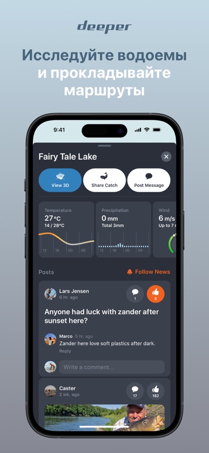 Follow the news of your favorite lakes and get notifications about recent catches or activity nearby. See what others are catching, share your own achievements, and discover new fishing spots in your area. Whether you’re fishing from the shore, boat, or on ice, you’ll always be in the know.
