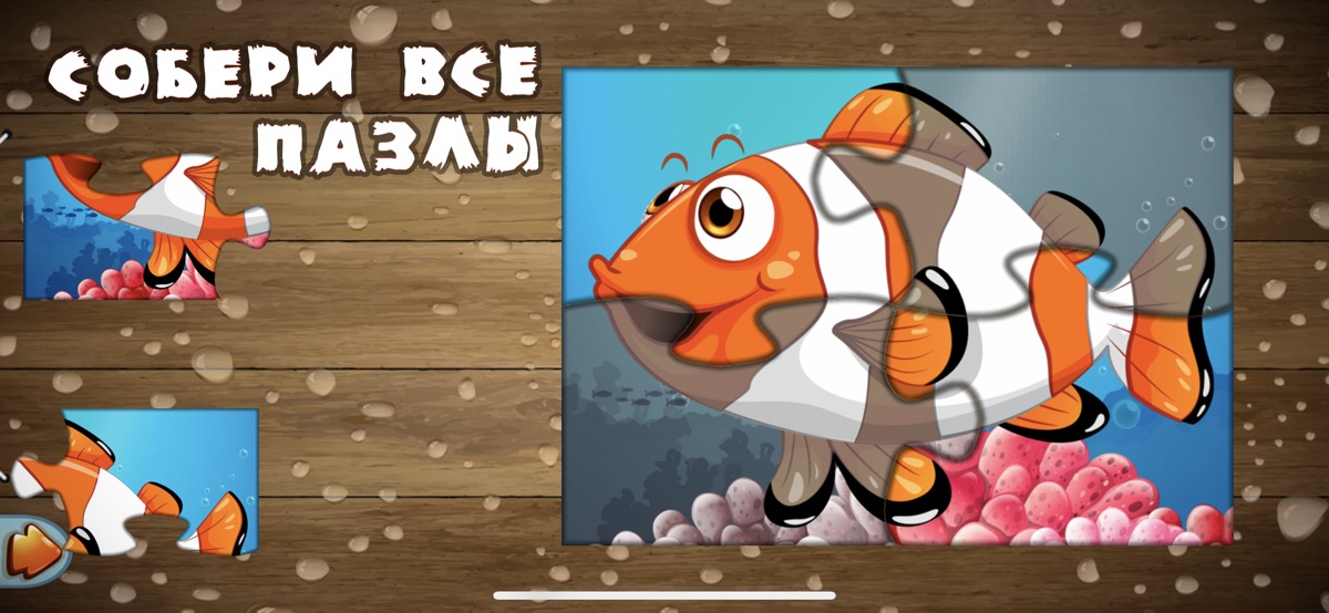 В нашем приложении Ваш ребенок познакомится с разными видами рыб, поймет основы рыбной ловли, с удовольствием пособирает простые пазлы (от 2 до 9 элементов) с прикольными рыбками, сыграет в подводную артиллерию, раскрасит подводных обитателей в простой и забавной раскраске, а также в игровой форме познакомится с основными цветами.