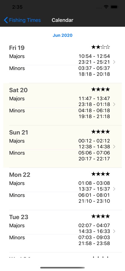 Fishing Times Calendar