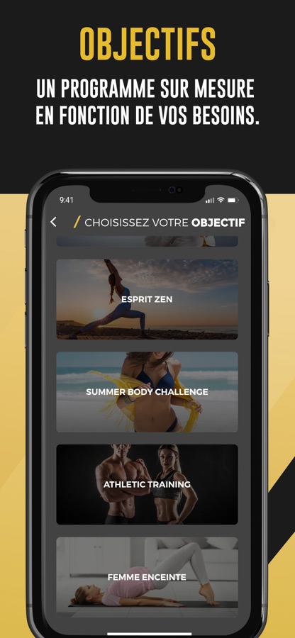 Sélectionnez votre objectif et laissez-vous guider par votre programme personnalisé & vos coachs qui vous accompagneront jusqu’à satisfaction ! Perdez du poids, reprenez le contrôle de votre corps, affinez votre silhouette ou encore travaillez à haute intensité, tous ces choix sont à votre disposition.