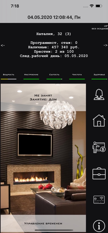 Игра научит тебя следить за важными аспектами жизни. Управляй ими, чтобы достичь успеха: