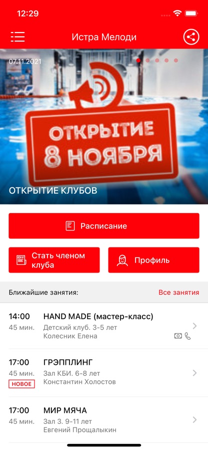 С помощью приложения вы можете следить за новостями, расписанием клубов, оперативно получать информацию об изменениях в расписании и специальных предложениях.