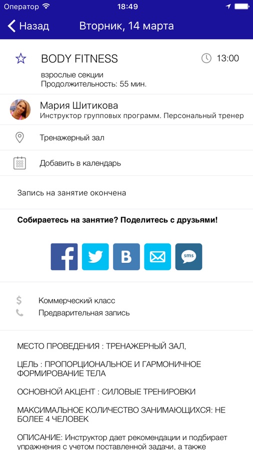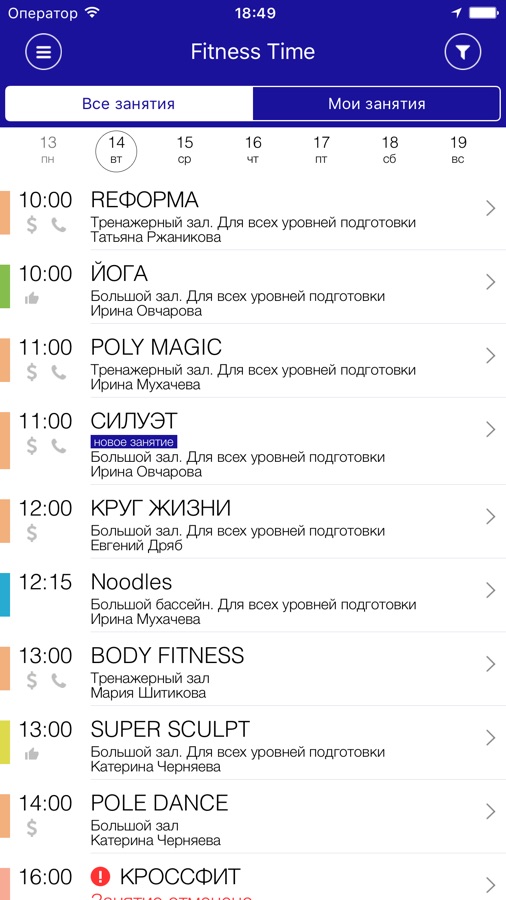 С помощью приложения вы можете следить за новостями, расписанием клубов, оперативно получать информацию об изменениях в расписании и специальных предложениях.