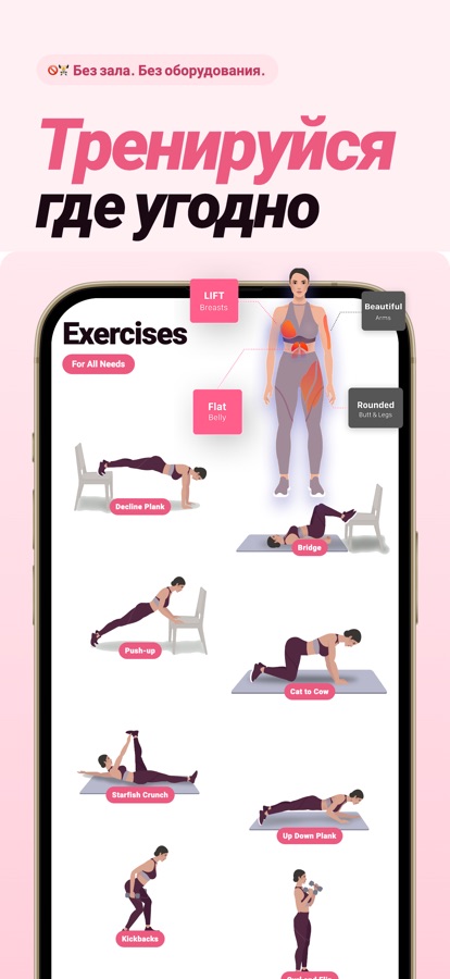 Наше бесплатное приложение тренировок для женщин и девушек предлагает Вам различные домашние тренировки в зависимости от вашего текущего уровня физической подготовки и желаемой интенсивности тренировок. Здесь Вы можете найти различные планы тренировок по фитнесу для похудения для всех частей тела — тренировка пресса, ягодиц, ног, тренировка сжигания жира и т. Д.