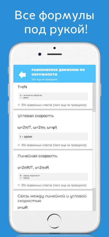 Формулы по физике также подойдут для ОГЭ и ЕГЭ, под каждой формулой есть подробное описание, то есть подписана каждая буква, а также процент и цветовой индикатор того, как хорошо вы знаете ту или иную формулу.