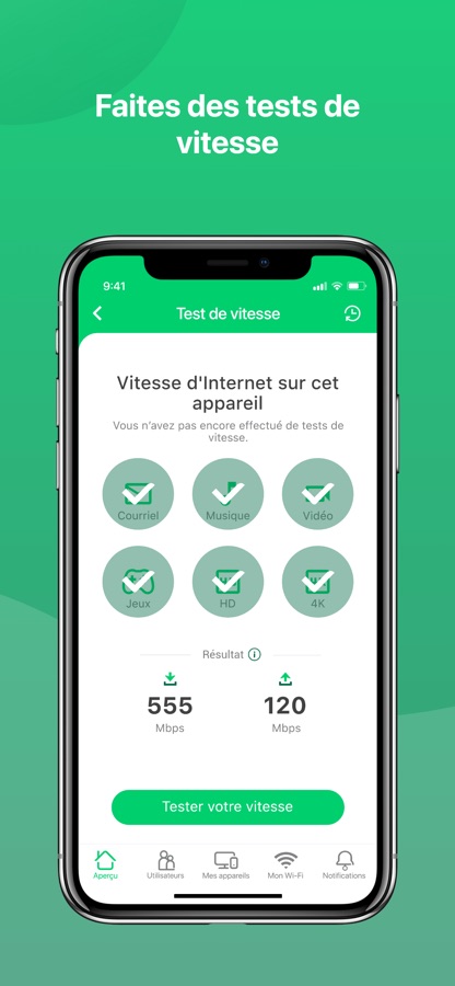 — faire des tests de vitesse afin de valider la vitesse de votre connexion à large bande et celle qui se rend directement à votre appareil pour déterminer par exemple la cause d’un ralentissement;