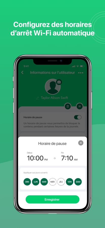 — contrôler l’accès des enfants avec des horaires d’arrêt Wi-Fi automatique à l’heure du coucher;