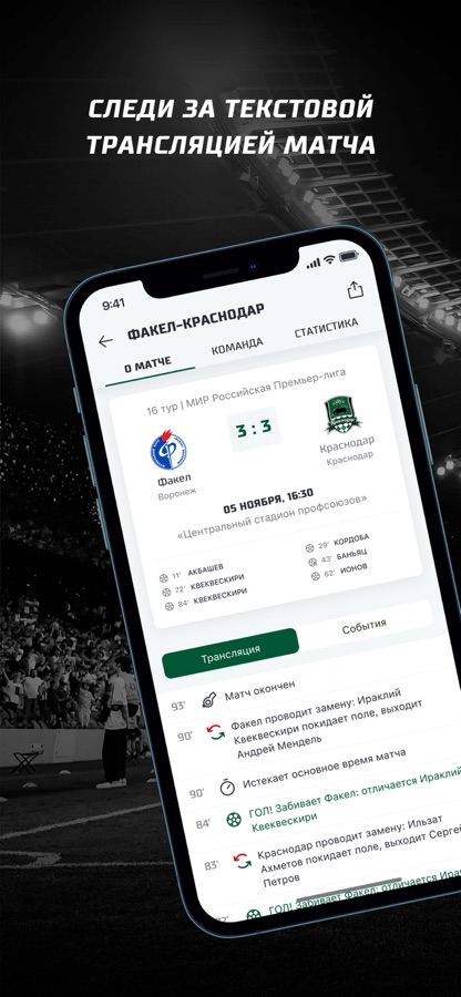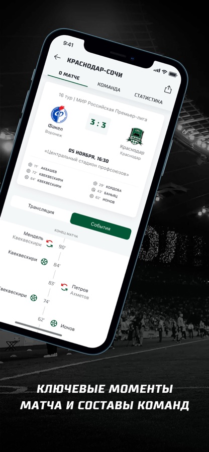 Официальное приложение ФК «Краснодар» содержит актуальные новости, видео, матч-центр с детальными разборами матчей! Получайте уведомления о важных новостях клуба и событиях матчей.