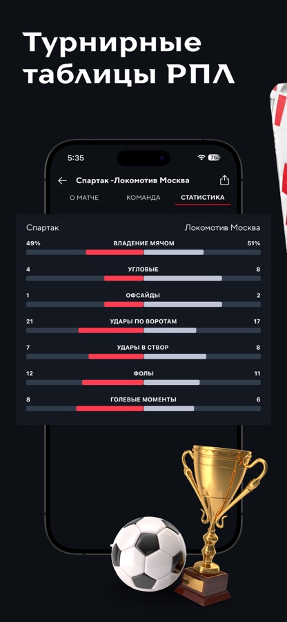 — Современный матч-центр, полная статистика, текстовые и аудио
