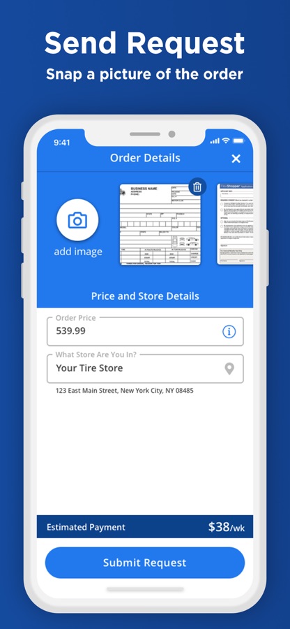FlexShopper Tires, featuring FlexDollars, lets you lease to own wheels, batteries and wipers from any major Tire store with your smartphone. Simply take a photo of the product or work order and submit the request. Pickup in store or deliver your items to your door step. It’s that easy!