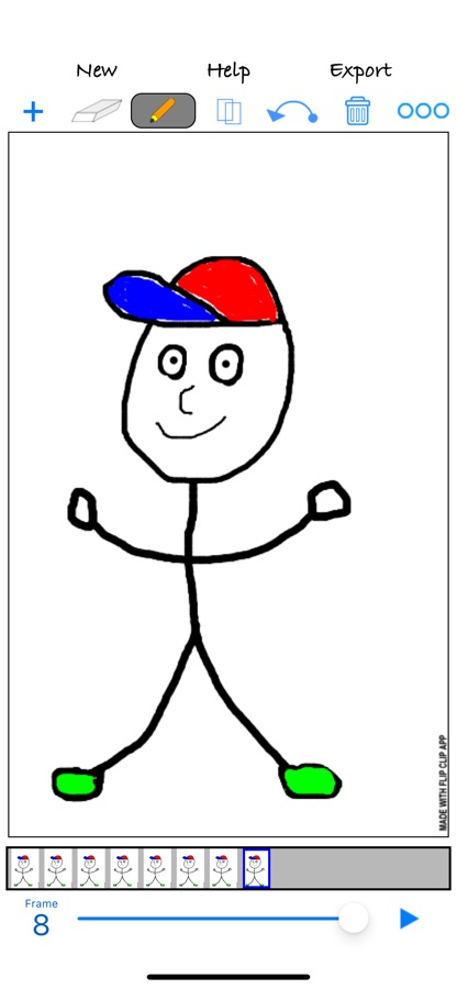 You can draw with many colors, erase or copy pages for editing only new details. Also available are different stroke sizes. The PAINT ABOVE YOUR FINGER function is good for accurate drawings. And if you are not satisfied with your last stroke you have a UNDO Button. It is also possible to add a sound of your media library to your flip-book movie.